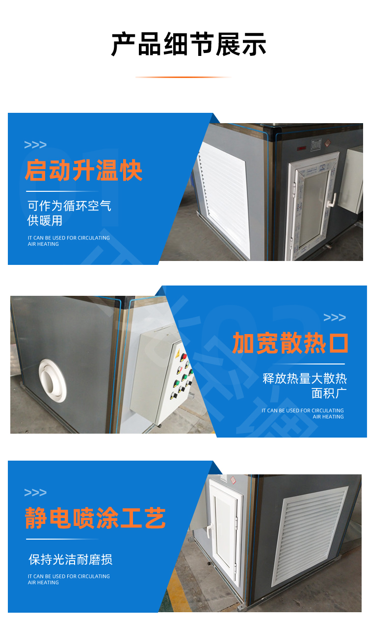 產品主要應用于溫室大棚、車間、候車室、各種展廳等大型場所的取暖設施!