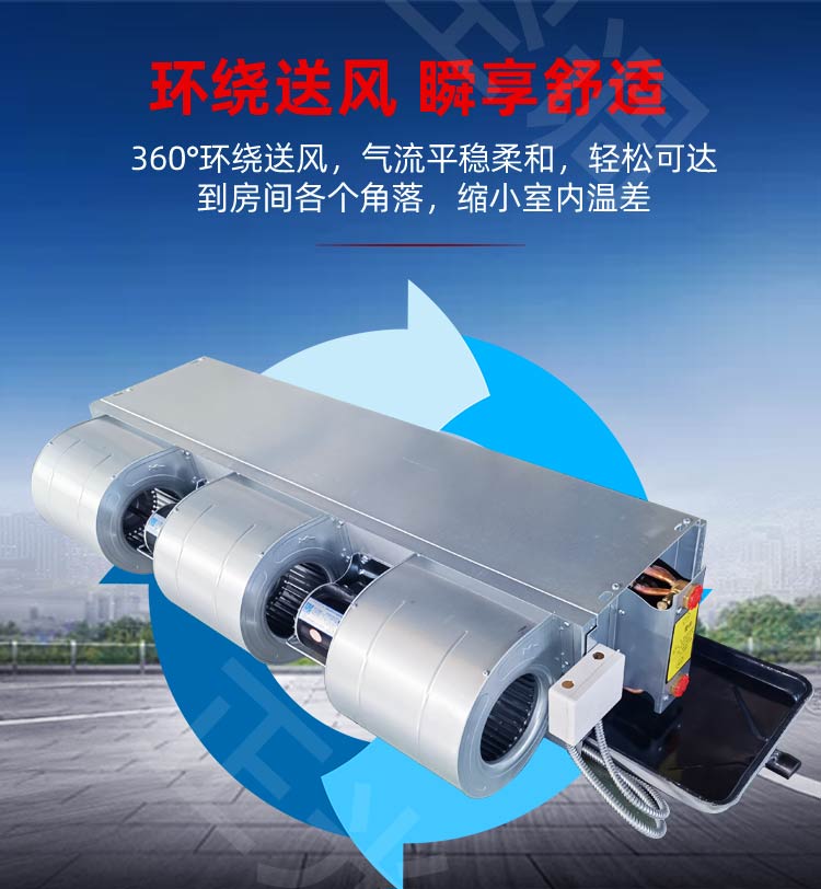 2.風(fēng)機(jī)盤管機(jī)組送風(fēng)量約為250~2500m/h,出口靜壓小于100Pa(出口靜壓大于30Pa為高靜壓型)。